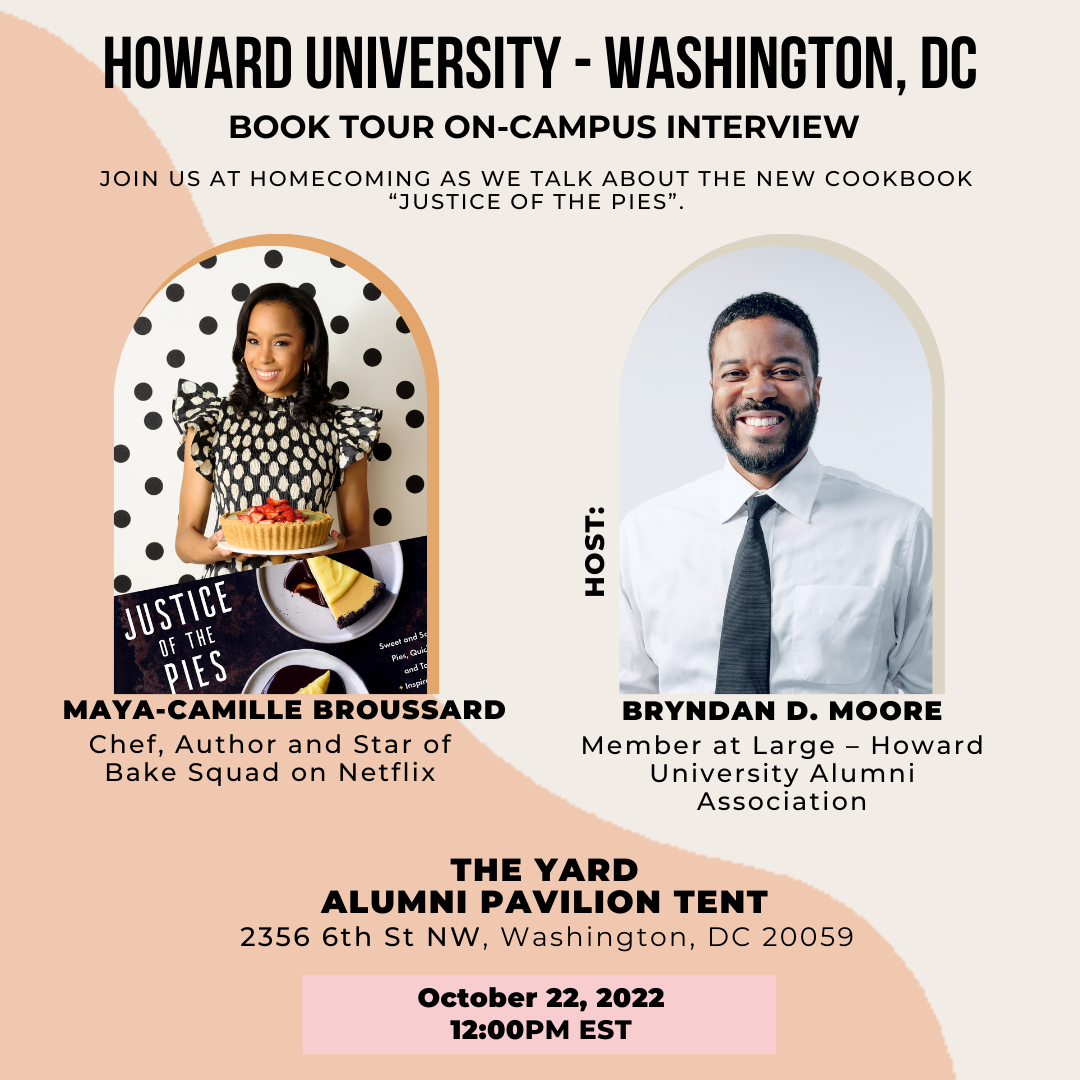 Join Bryndan D. Moore of Howard U’s Alumni Association and Chef Maya-Camille Broussard at Howard U’s homecoming on The Yard!