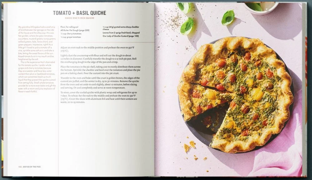 “…The cookbook is a mix of sweet and savory pies, tarts, and biscuits coupled with profiles of social activists like Tanya Lozano of Healthy Hood Chicago and Kleaver Cruz of the Black Joy Project. The pies are showstoppers, period. The Strawberry-Basil Key Lime Pie is electric green. The purple-dabbed, bacon-striped Fig and Pig Quiche could grace the cover of a magazine. I’m thinking of doing the Sweet Potato Praline Pie for Thanksgiving. The recipes are whimsical (chilaquiles quiche), glamorous (lavender lemon tart), and bring the party (tequila lime whoopie pies). And doesn’t that cover all the bases?”
