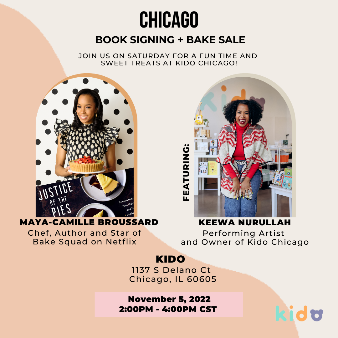 Chef Maya-Camille and Keewa of Kido Chicago are teaming up for a book signing and bake sale. Bring the kiddos and pull up from 2 - 4pm to purchase some sweet treats.